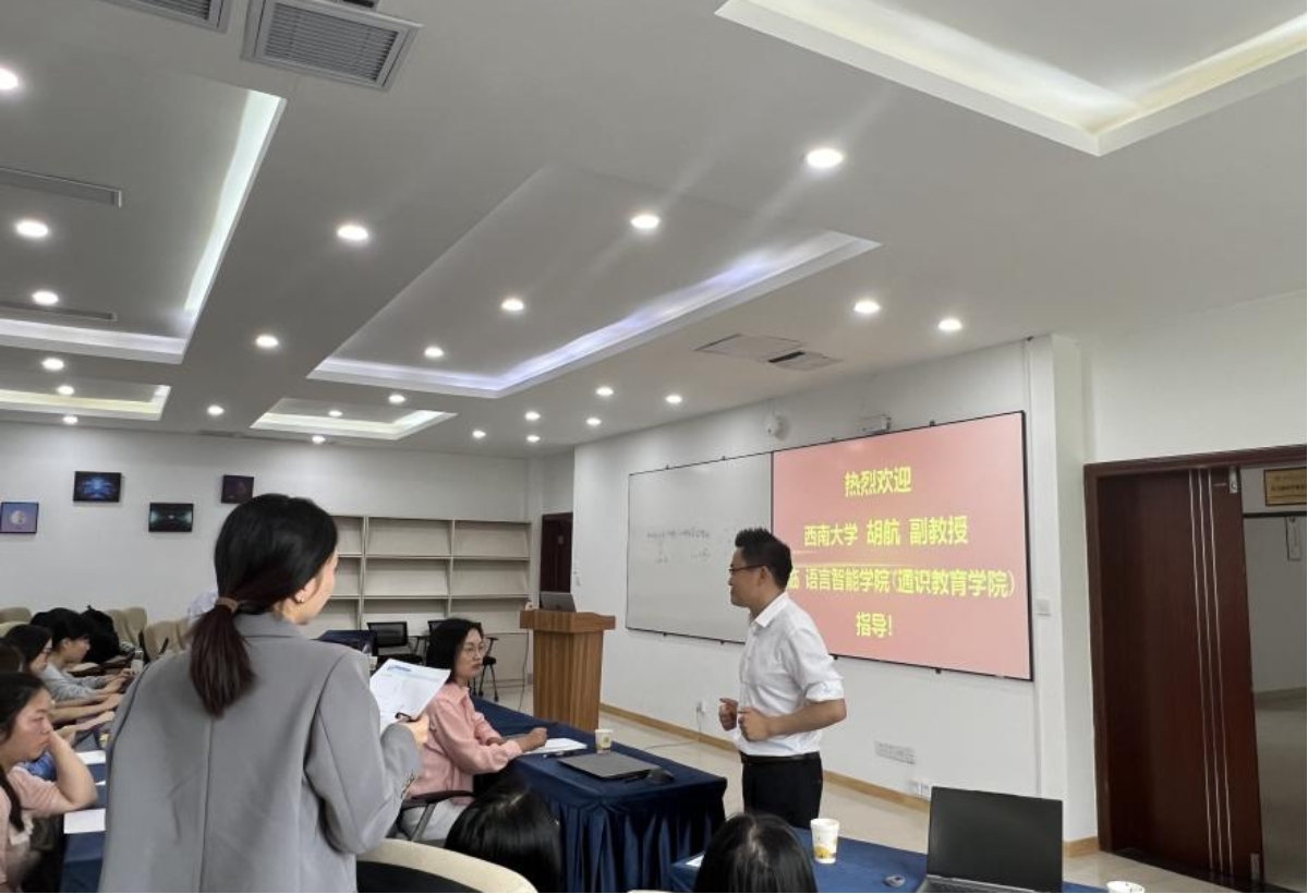2024年4月17日上午,由四川外国语大学语言智能学院(通识教育学院)、语言脑科学研究中心和川外学坛联合举办的语言智能大讲堂——AI研修讲坛”在博文楼401报告厅成功举行。西南大学卓越(智能)教学中心主任胡航副教授应邀作了题为“计算教育学视野下的深度学习研究范式”的学术讲座。本次讲座由语言智能学院(通识教育学院)杜爽副教授主持,语言智能学院(通识教育学院)院长姜孟教授、学院部分青年教师及硕博士研究生参加了此次活动。