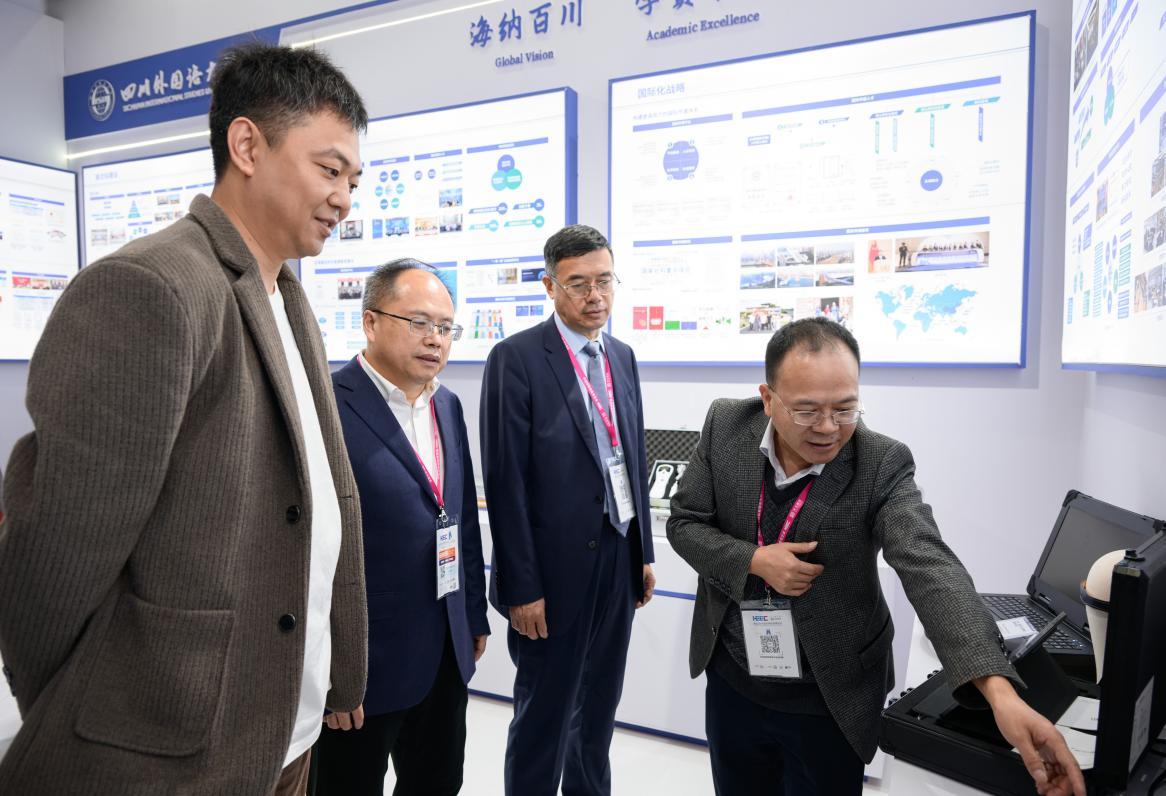 在展会现场,重庆市教委领导、专家和代表们也纷纷在川外展台前驻足察看,咨询交流。他们表示,过去大家都将智能化、产业化视为理工类院校的专属领域,而川外被认为只是一所致力于语言教学的学校,但今天看到川外在智能化赛道上做出了如此令人瞩目的成绩,开发出了语言脑机接口这样高端前沿的产品,让人出乎意料、倍感欣喜。