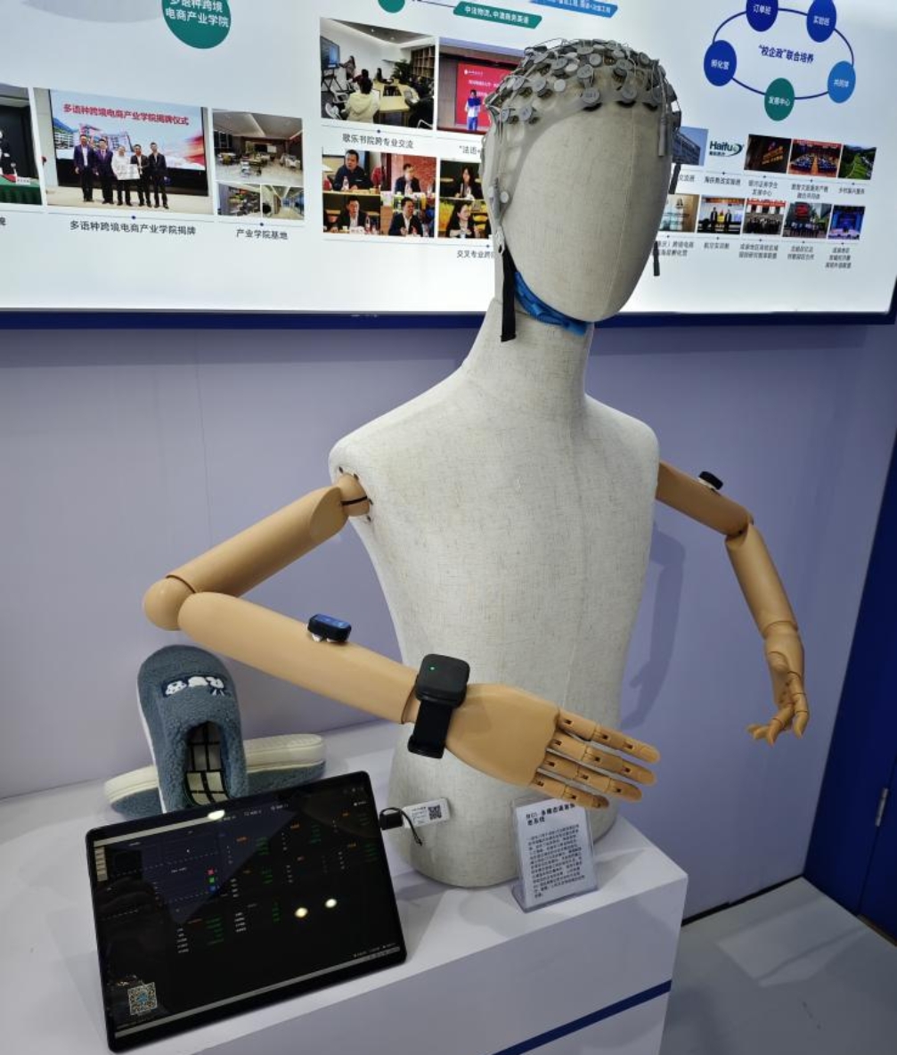 在成渝专区,重庆10余所高校纷纷亮出了高等教育创新最新成果。四川外国语大学主要展示了学校在新文科建设、国际化战略、产业化服务、智能化改革等四大方面的办学成果。其中,语言智能学院(通识教育学院)展示了其在智慧语言康复领域所取得的系列成果,包括BCI语言认知衰老测评系统、BCI多模态语言衰老系统以及BCI语言障碍干预与调控系统。据悉,该系列产品属于语言智能科技范畴,是靶向语言脑疾病先导技术的概念性产品,市面上尚无同类产品,代表着学院和去年由我校联合高科技企业联合发起成立的重庆市沙坪坝区国际语言脑机接口联合研究院在该领域所取得的新进展。