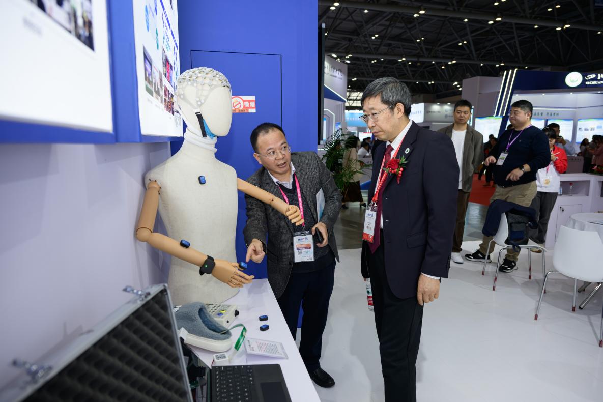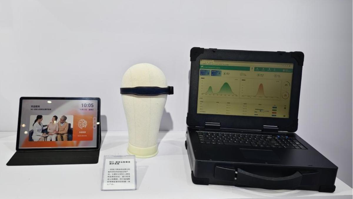 展会现场,BCI语康系列产品引起了大家的关注与热议。该产品围绕“语言智能赋能全生命周期语言健康”理念,基于特异性语言任务,通过集成脑电实验、行为实验、机器学习等技术,对语言衰老与障碍开展测评与筛查,将有助于阿尔兹海默、帕金森等神经退行性语言脑疾病的研究和治疗。“BCI语康系列产品本质上是语言学、脑科学、生命科学、人工智能等多学科交叉融合的成果,旨在为全生命周期语言脑健康保驾护航。”语言智能学院(通识教育学院)院长兼国际语言脑机接口联合研究院院长姜孟教授向前来观展的领导和嘉宾如是介绍。
