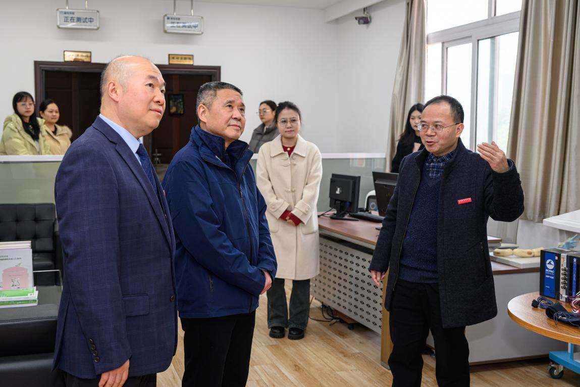 何勇副区长一行参观了学校校史馆和语言脑科学研究中心,实地考察了中心脑电实验间、眼动实验间、认知调控实验间、行为实验间、言语治疗室等实验设施,深入了解了我校的办学成就以及语言智能学院在语言智能和语言脑科学领域的前沿探索和技术成果。