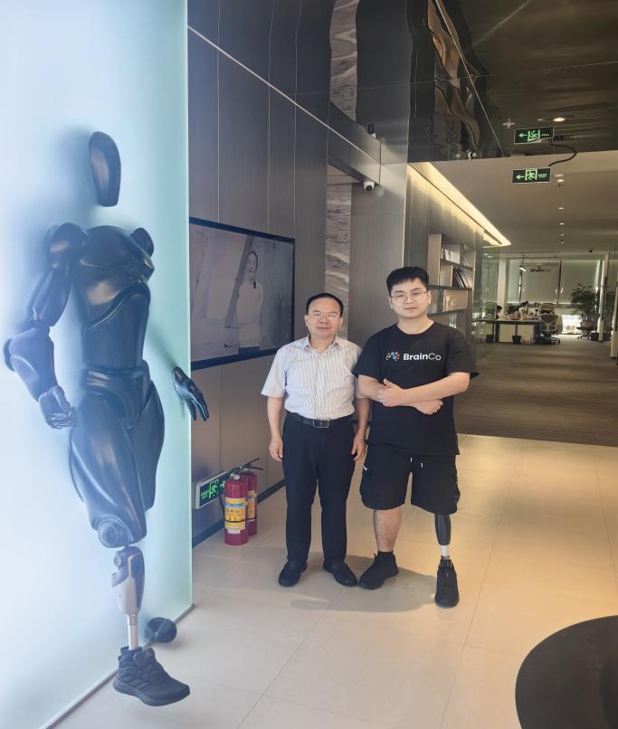 在为期三天的时间里,姜孟院长一行先后参观、考察了交浦科技、强脑科技(BrainCo)、肯綮科技、创想未来机器人、玄源科技、冠隆医疗等企业的前沿科技产品,重点围绕传感器(脑电/心电/肌电电极技术、光电/超声/压力数据采集技术及多模态耦合技术)、脑机接口(灵巧手、神经义肢、安睡仪、正念舒压系统)、ROS智能机器人(腊肠狗、天蝎座、射手座、金牛座、狮子座等学习教育机器人/平台)、具身机器人(人机协同、人机交互、信号解码、功能测定、智能控制)以及神经调控(ADHD/ASD干预调控系统、FES功能性电刺激技术)等前沿产业与技术,展开了深度调研、交流与探讨。